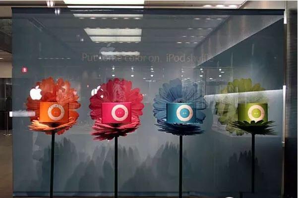 橱窗高度中心线最好能与客户的视平线一致,这样整个橱窗内所有陈列的商品都在顾客的视野中。