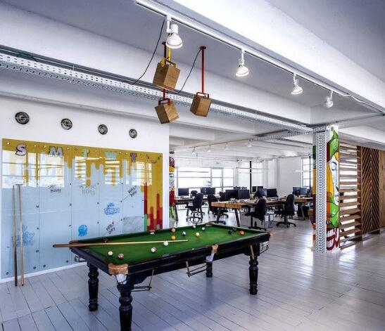 简单的活动空间通过色彩搭配,非常具有活力,让员工在工作之余娱乐片刻也非常能调解人的身心。